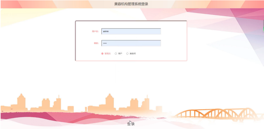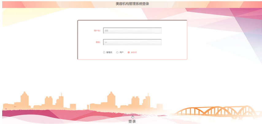 在框架上美容师点击登录按钮,在登录界面填写信息搞定后,单击登录操作,如图5-15所示: