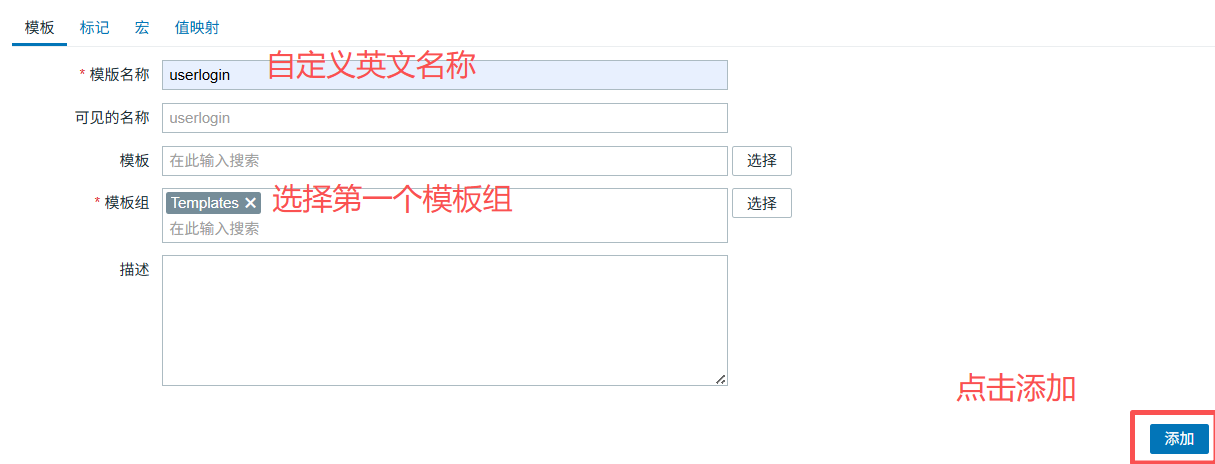 接下来我们凭借一个模板来添加监控项,以便以后好管理,且同类型主机直接添加此模板就行,修改参数时直接修改模板即可而不是一个一个修改监龙项的参数