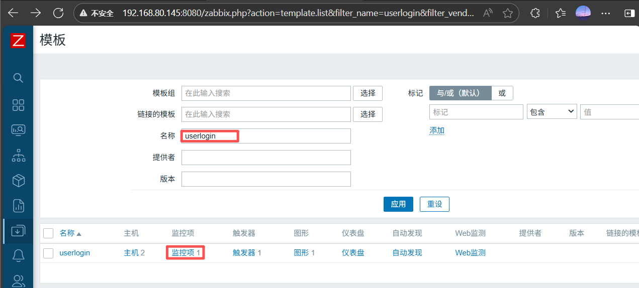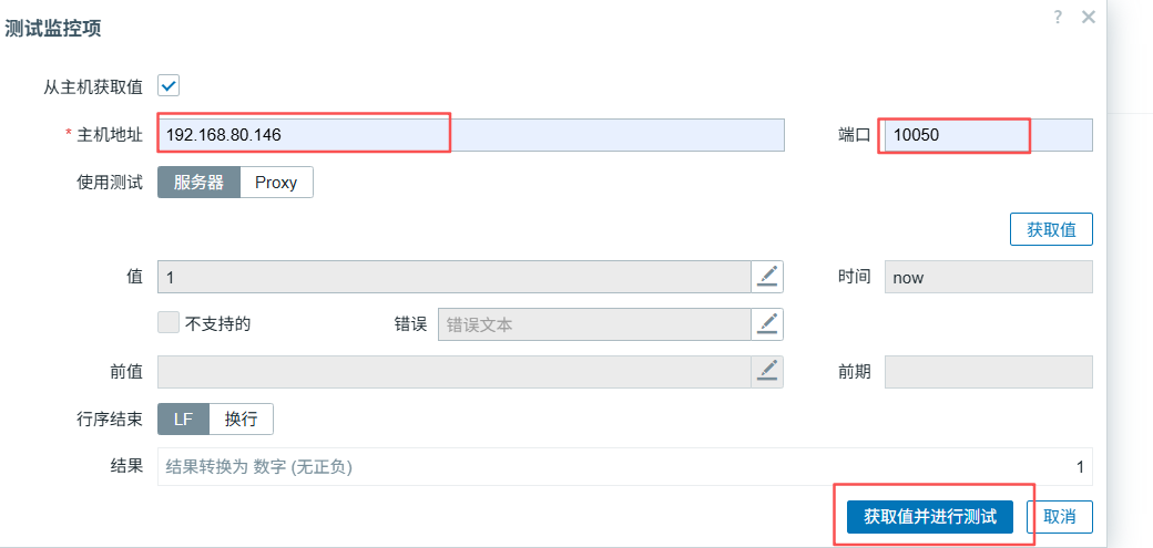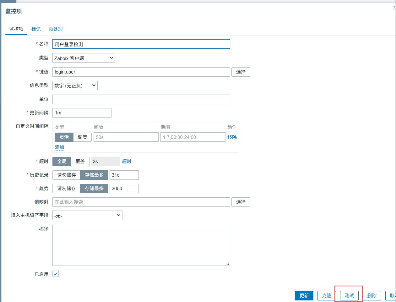 点击创建监控项,点击测试