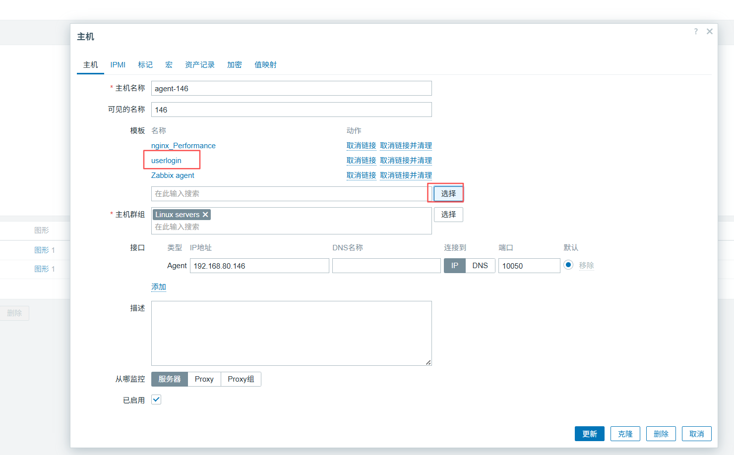 将次模板添加到需要监控的主机