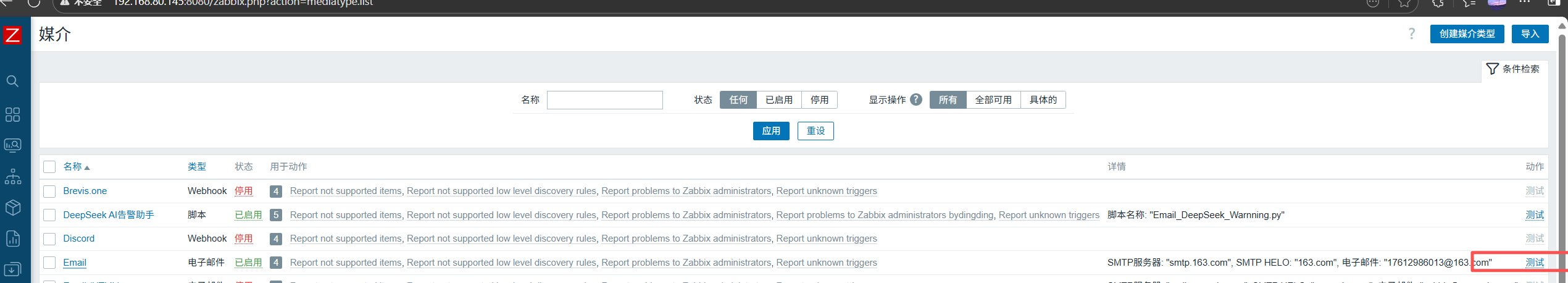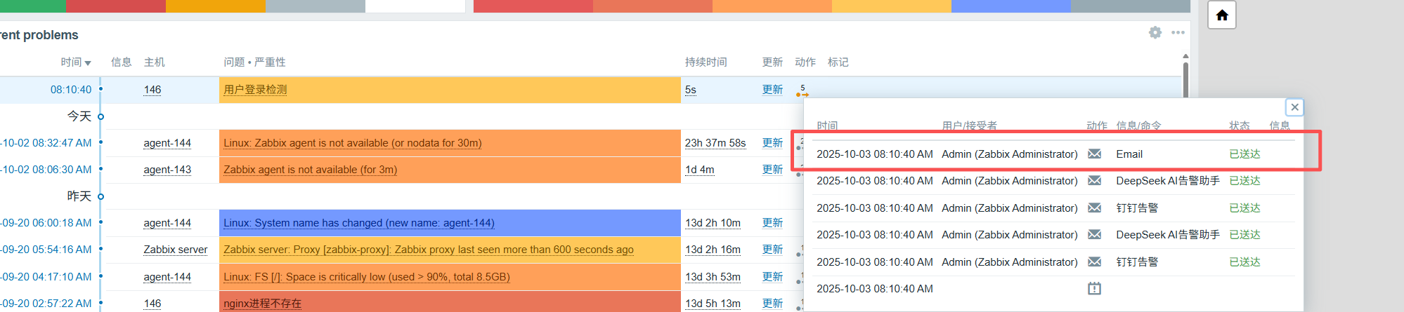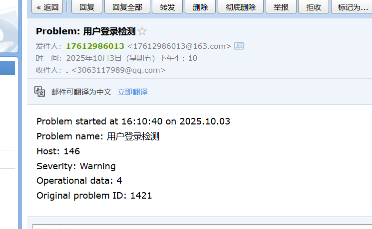 当再次出现告警,鼠标滑倒图片的位置,显示email已发送即可
