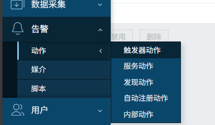 之后点击告警——动作——触发器动作