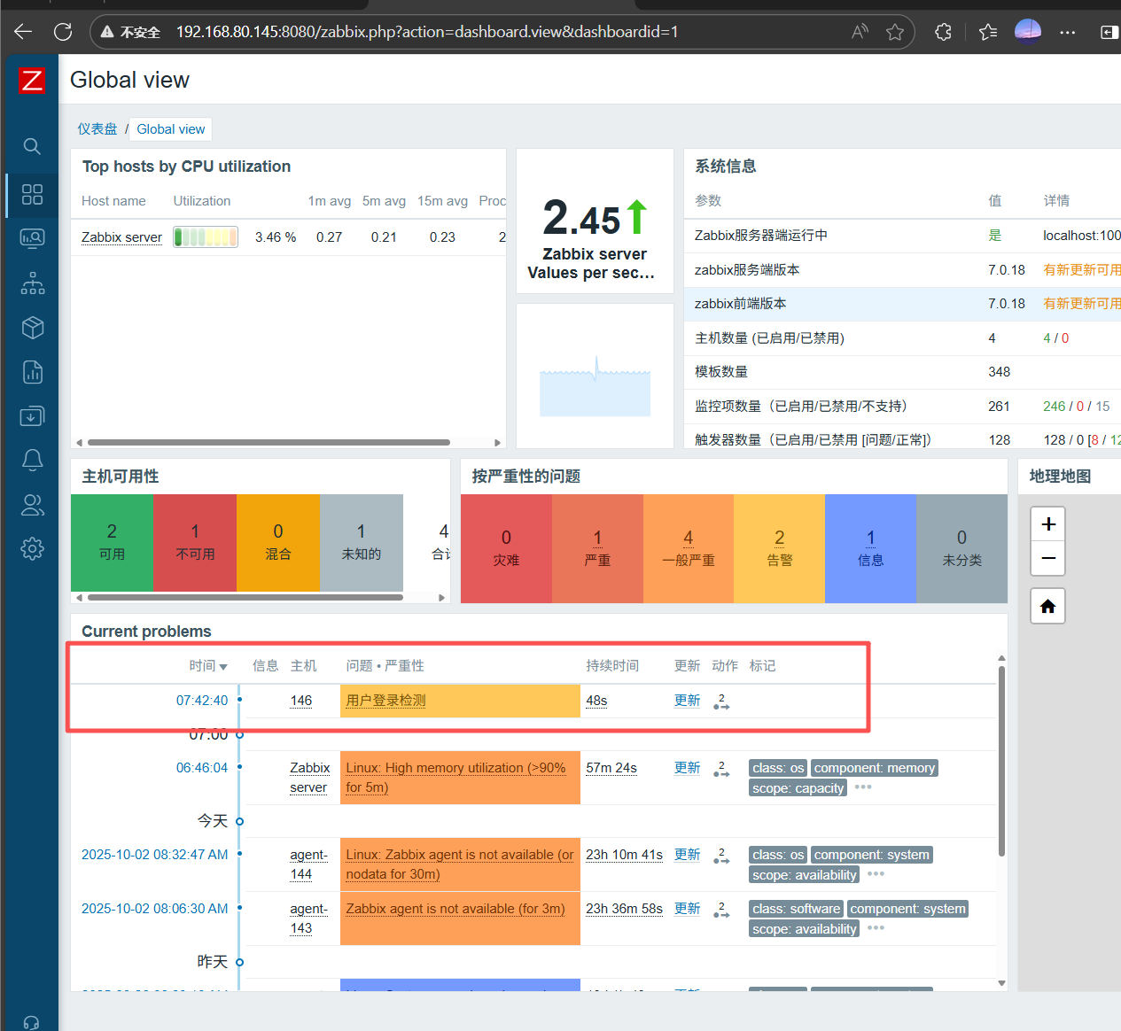 现在大家有了监控项,但是他只会监控不会告警,所以应该创建触发器,当监测到登录人数大于3时告警