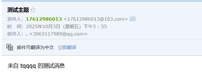 这里我选择163网易作为发件人,qq为收件人