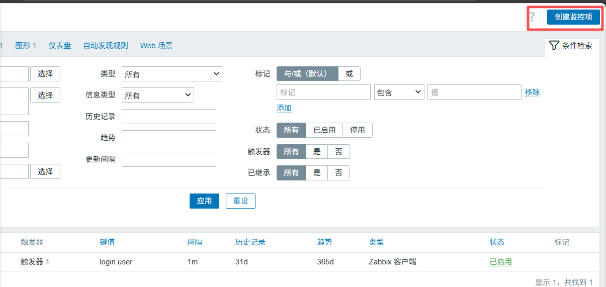 点击右上角创建监控项