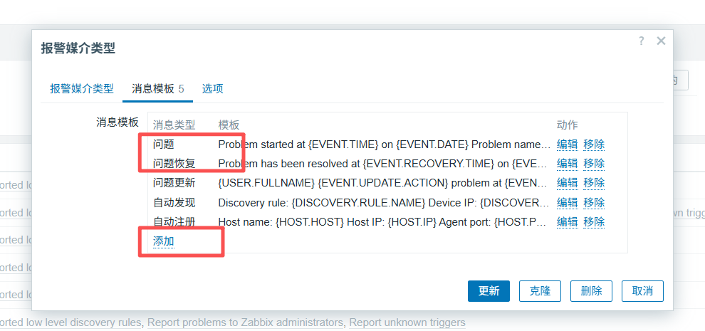 之后再点击消息模板——点击添加——选择问题——困难恢复