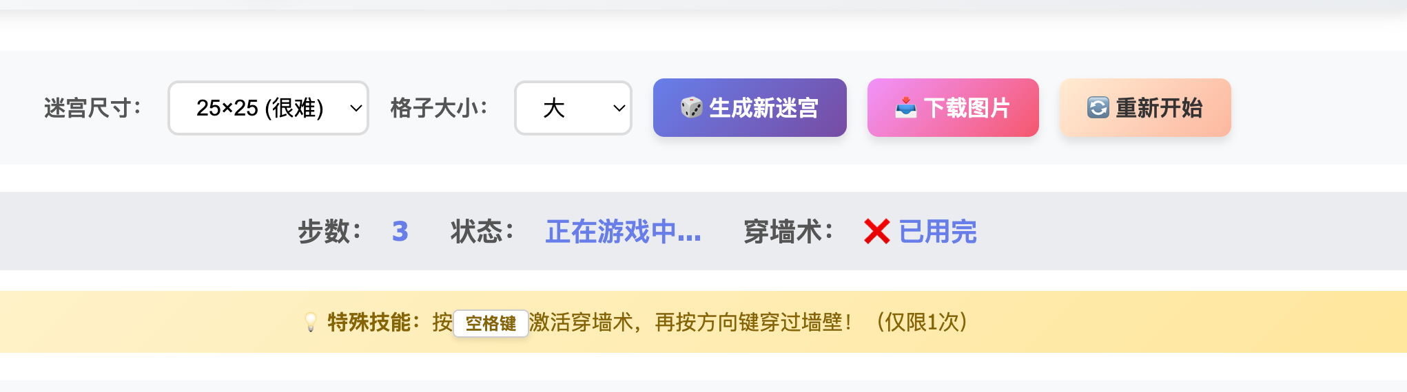 - 空格键 - 激活穿墙术(每局1次)
