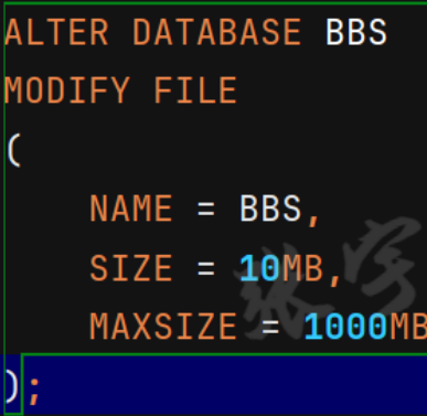 3.修改主数据库文件、辅助数据文件、事务日志的最大容量和文件每次增长量的语法格式