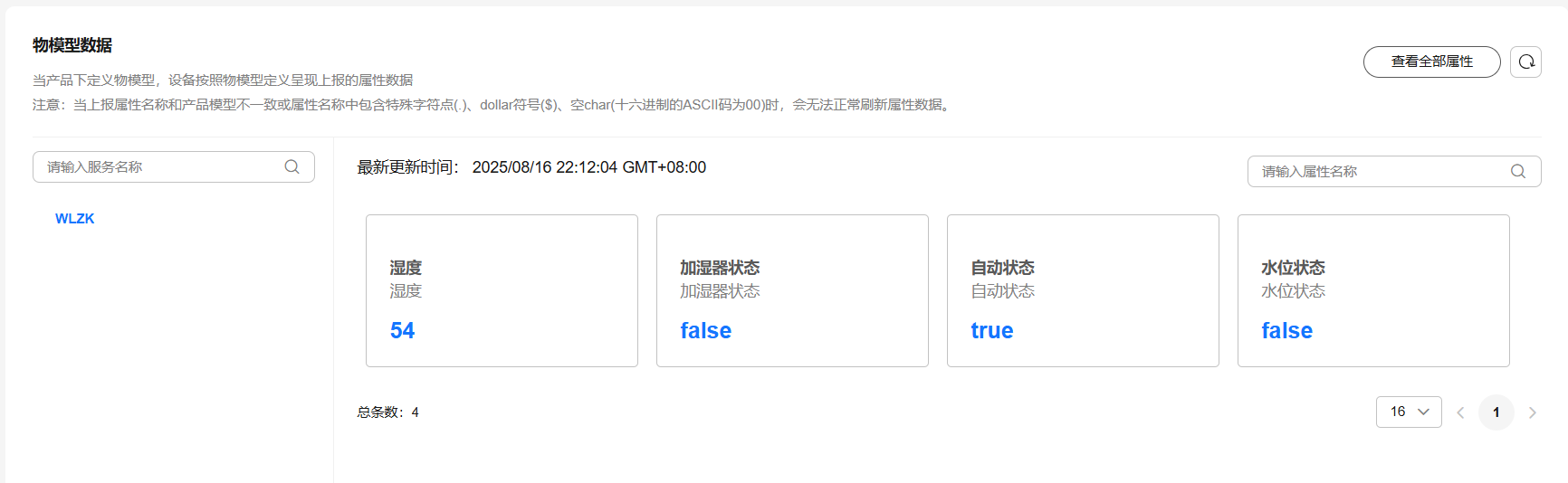 做好这些之后,点开所属产品的设备信息,可以在物模型数据看到这样的信息。