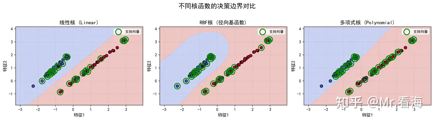图3:不同核函数可以处理不同复杂度的分类问题