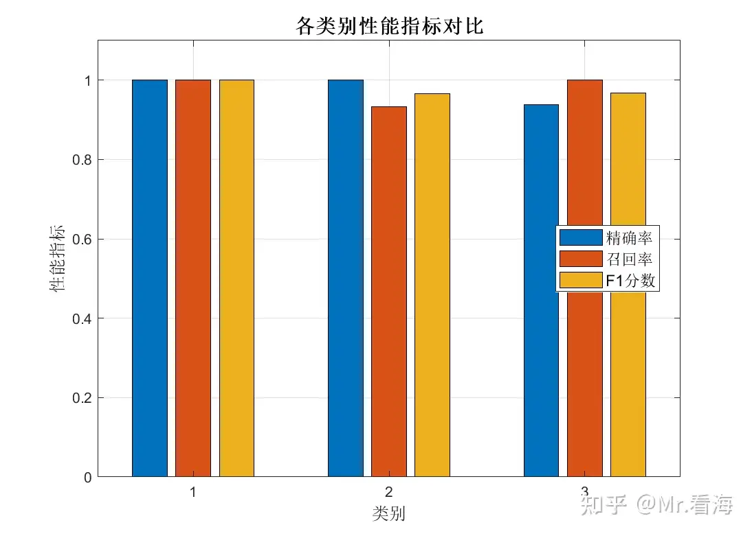 图:三个类别的精确率、召回率和F1分数都是100%