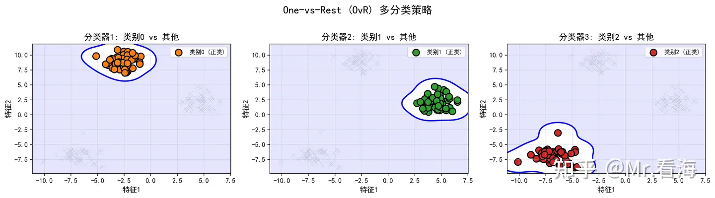 图2:One-vs-Rest策略将多分类分解为多个二分类问题