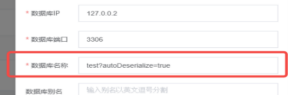 复现步骤: 1. 定位到【xx管理-新增xx】处,点击新增,将数据库名称设置为test?autoDeserialize=true,点击确定,发现没有对autoDeserialize做过滤 (界面和接口)