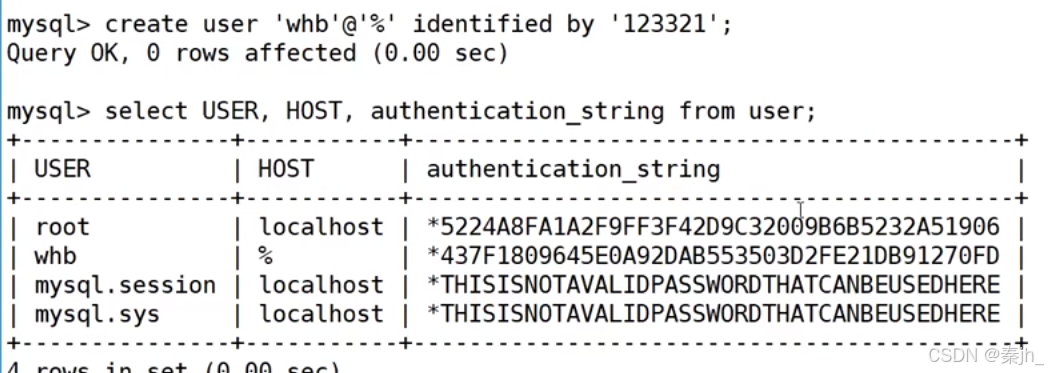 - host: 表示这个用户可以从哪个主机登陆,如果是localhost,表示只能从本机登陆