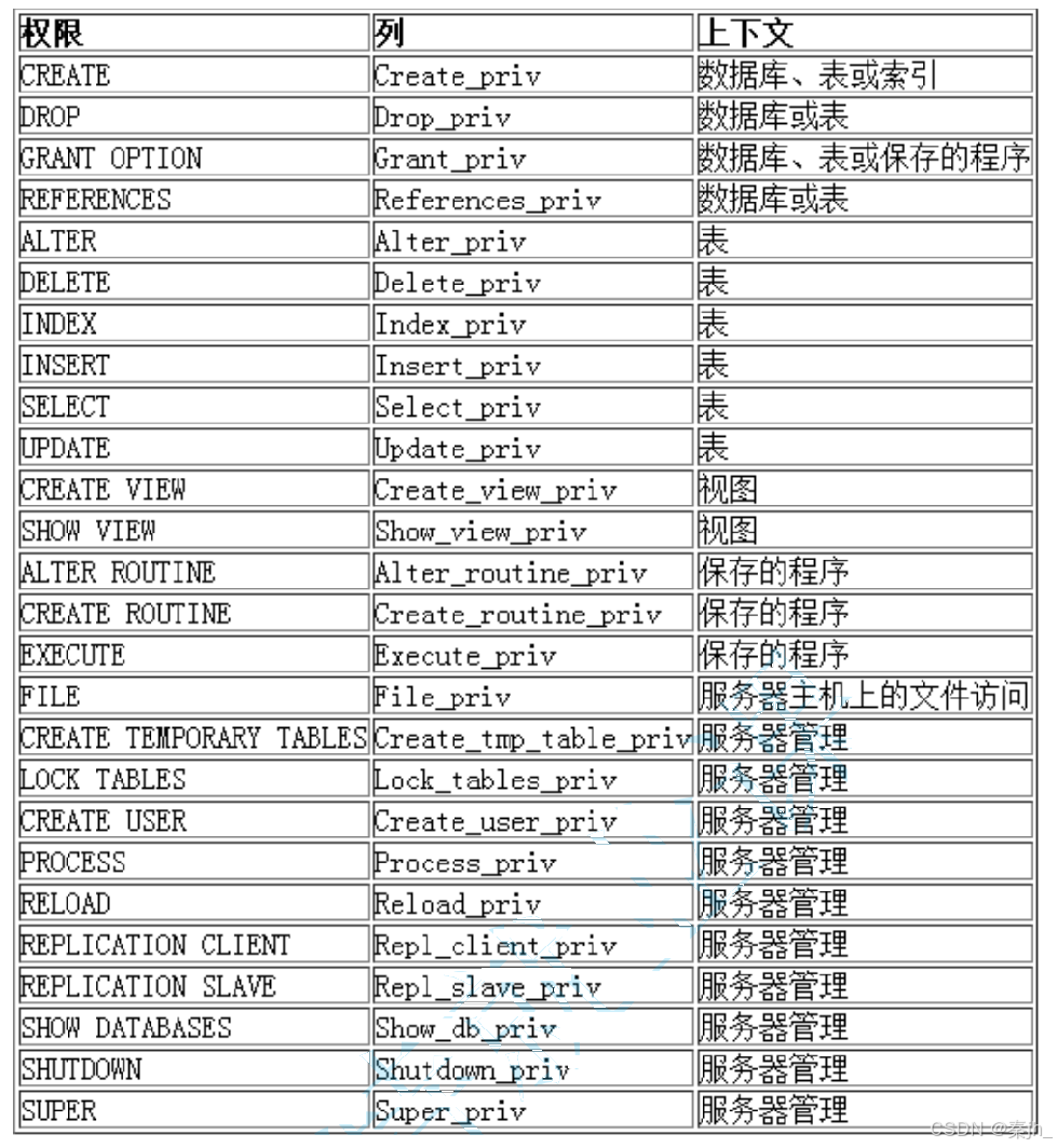 MySQL中的用户,都存储在系统数据库mysql的user表中