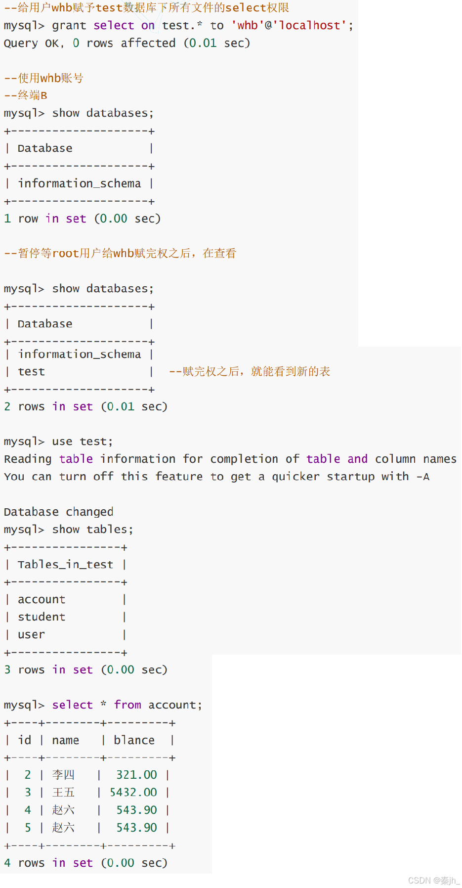 - identified by可选。 如果用户存在,赋予权限的同时修改密码,如果该用户不存在,就是创建用户