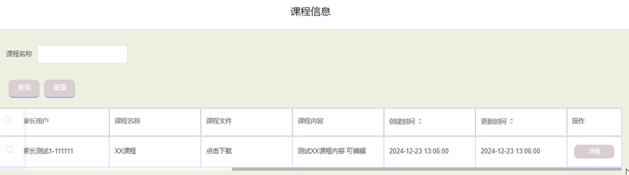 家长可以查询课程信息,包括课程内容、学习进度、课程时间等,方便安排孩子的学习计划。课程信息界面如图6-16所示。