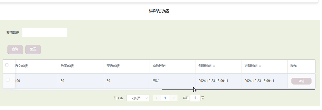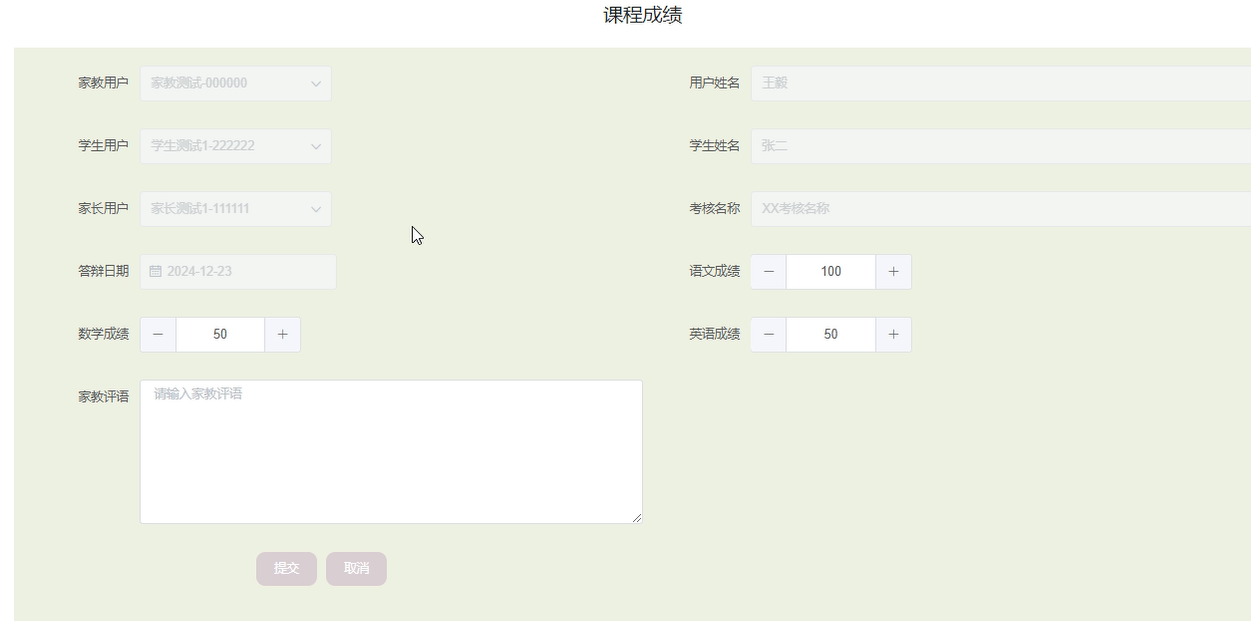 通过学生能够查看自己的课程成绩,了解每科的得分以及家教的评语,随时关注学习成果。课程成绩界面如图6-25所示。