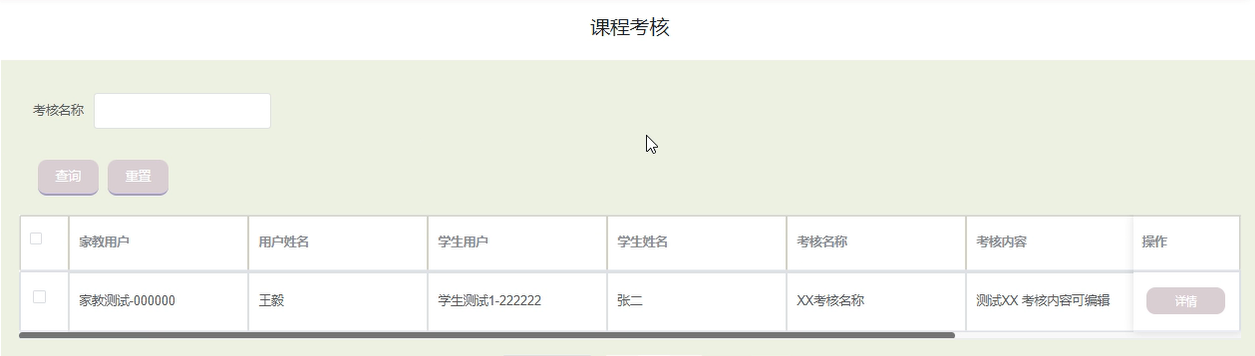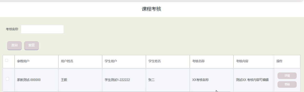 管理员许可查询、删除、编辑课程考核内容,审核答辩与考核过程。课程考核管理界面如图6-36所示。
