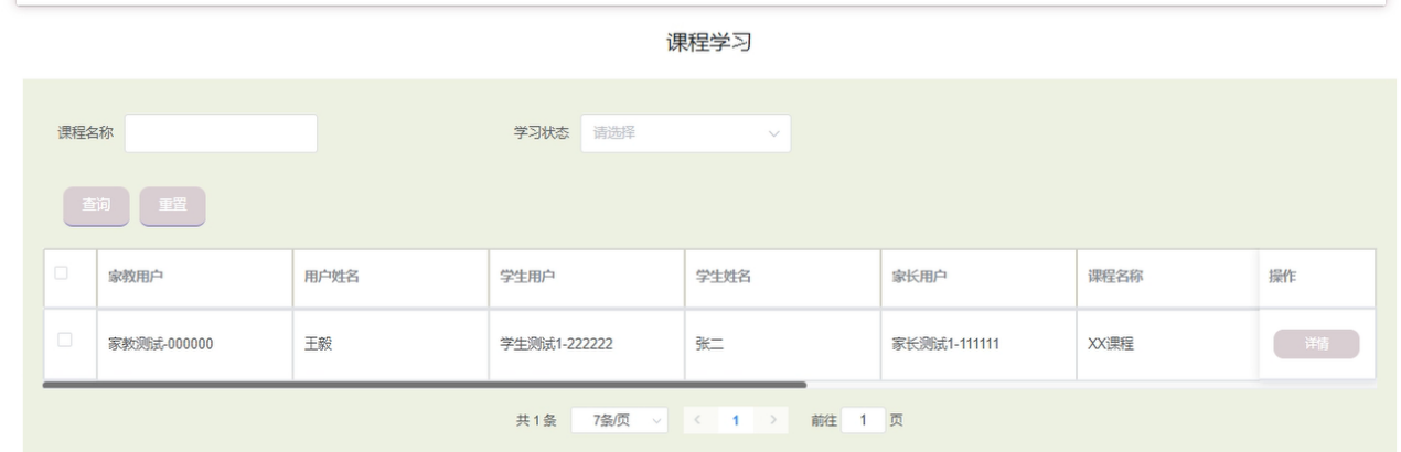 家长可以查看孩子的课程学习进度,包括学习时长、学习状态及每次学习的备注。课程学习界面如图6-17所示。