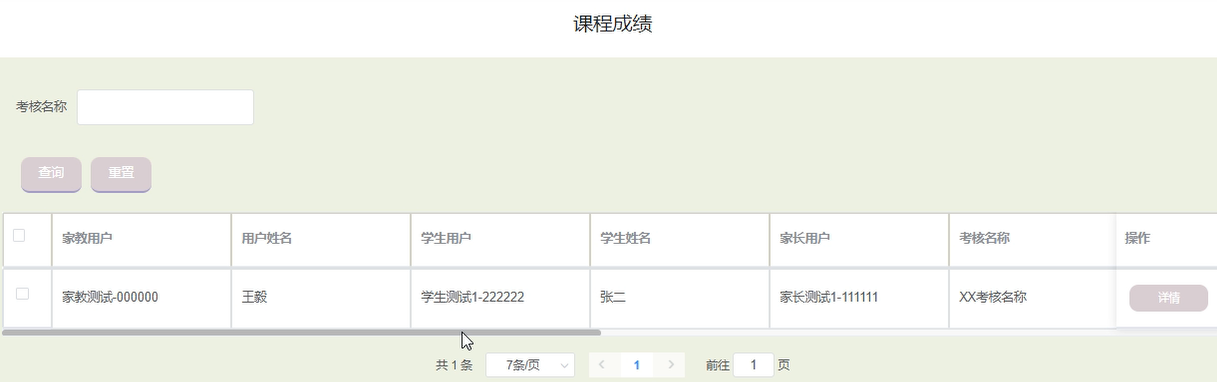 家长许可查询孩子的课程成绩,包括各科目的分数与综合评分,查看家教评语并与家教进行沟通。课程成绩界面如图6-18所示。