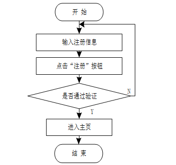 否已被运用,系统验证无误后,将提示用户注册成功。用户注册流程图如下图所示。就是用户点击“注册”按钮,系统跳转至注册页面,用户需填写并提交必要的注册信息(如用户名、密码、邮箱、电话号码等),架构将对注册信息验证,确保必填字段不为空,密码符合复杂度要求等,并检查用户名和邮箱