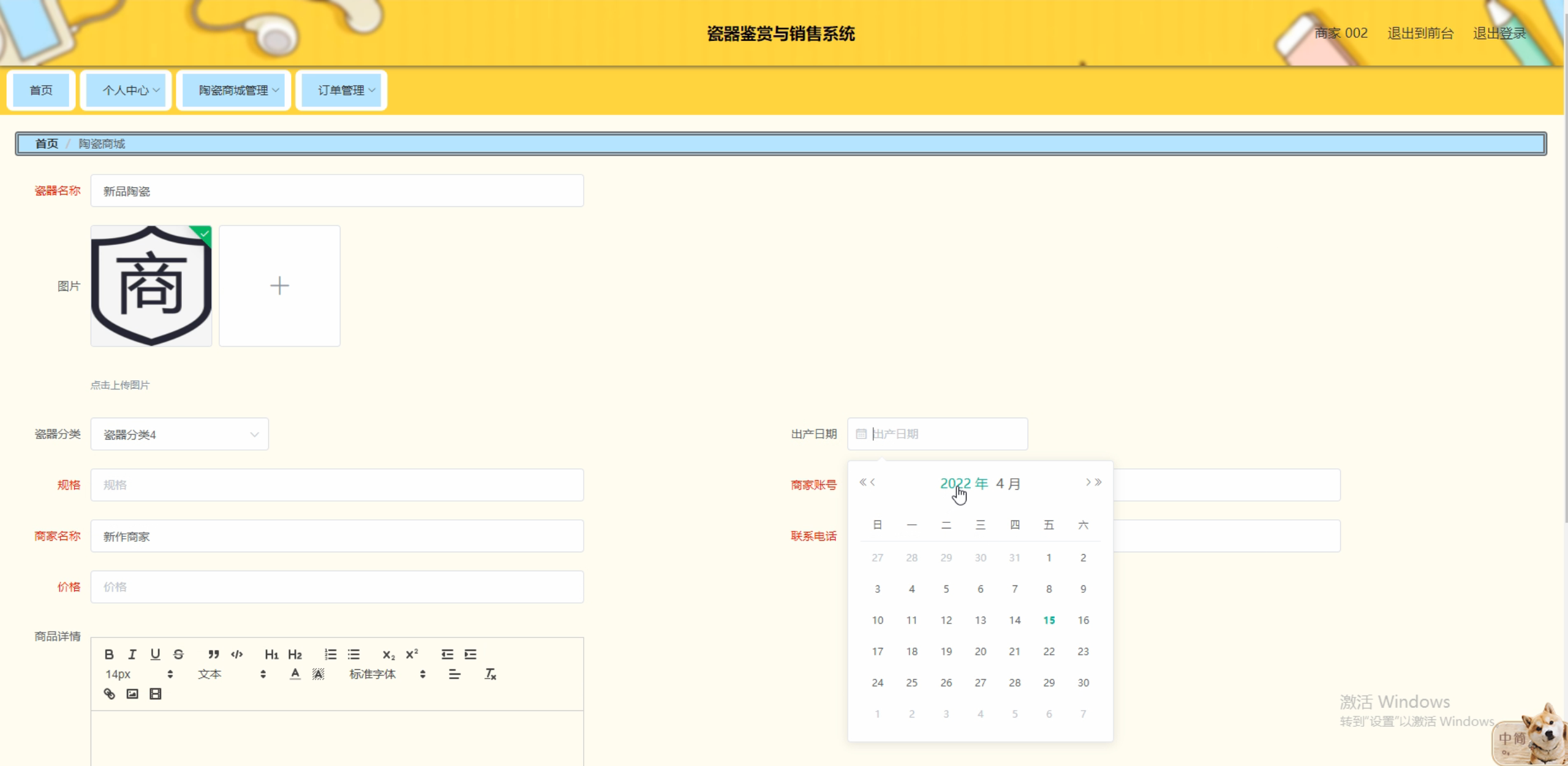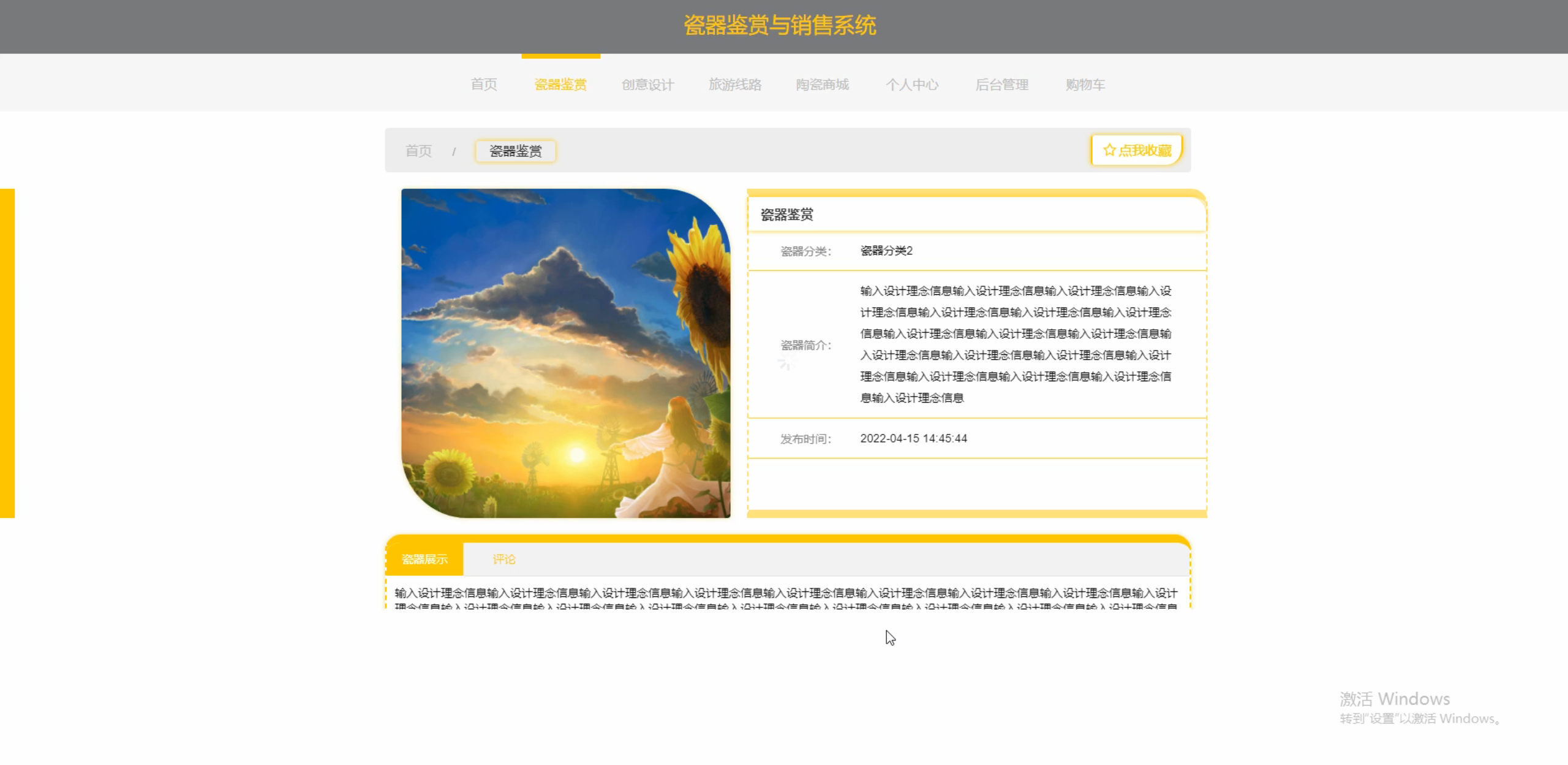 - 瓷器展示:提供瓷器的高清图片、详细描述、制作工艺等信息,提升用户的鉴赏能力和购买决策水平。