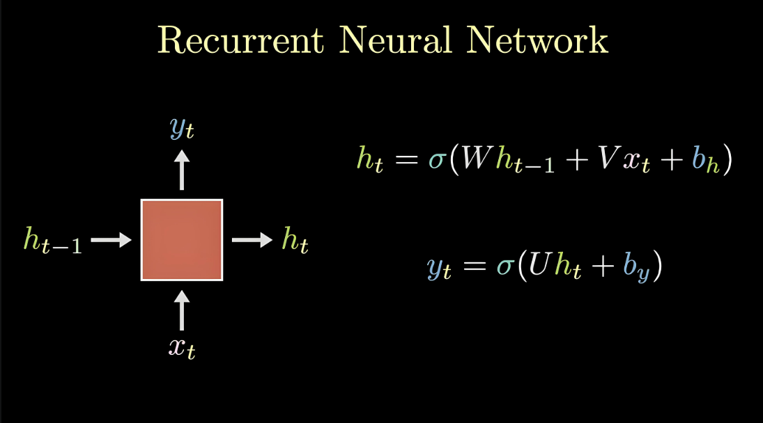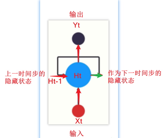 RNN的循环机制使模型隐层上一时间步产生的结果, 能够作为当下时间步输入的一部分(当下时间步的输入除了正常的输入外还包括上一步的隐层输出)对当下时间步的输出产生影响.