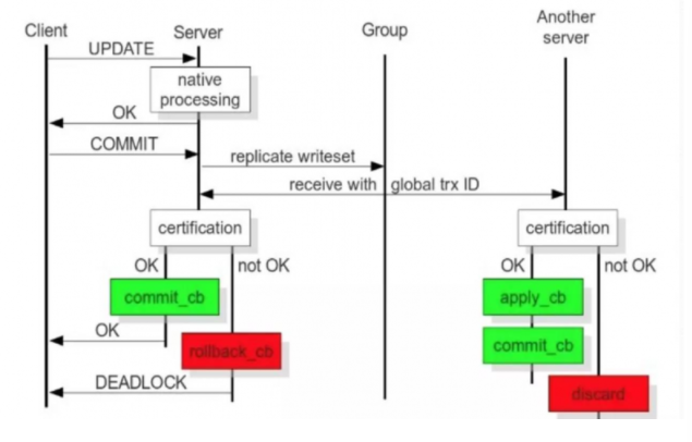 使用基于事务的复制保证数据一致性,所有事务在所有节点上以相同的顺序执行。
