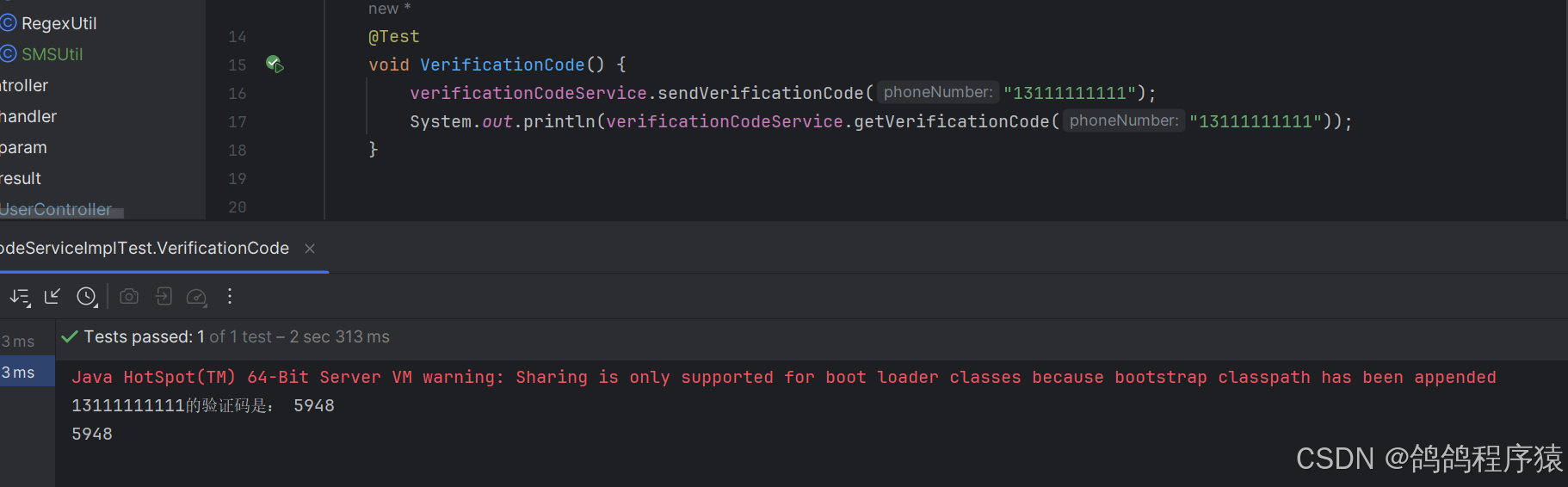 System.out.println(phoneNumber + "的验证码是: " + code);