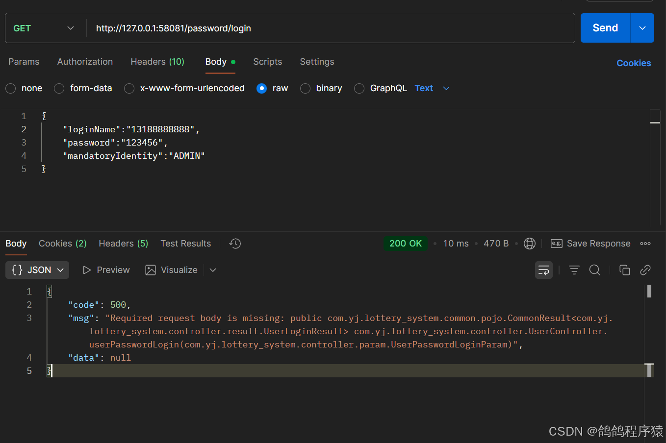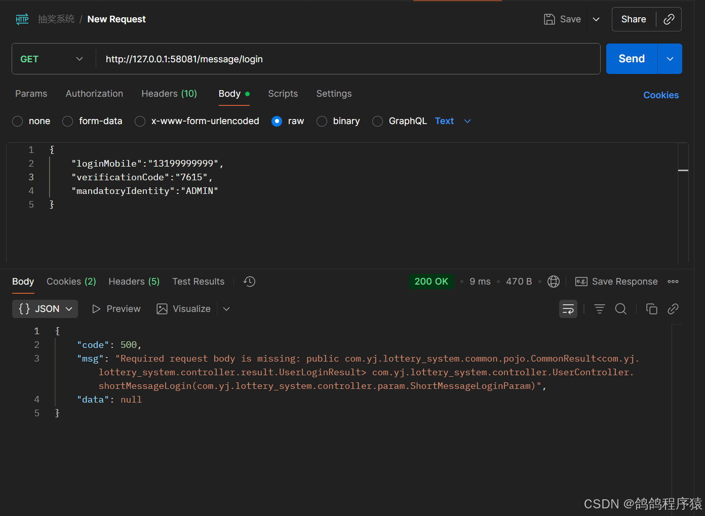 data: JSON.stringify({loginMobile: loginMobile , verificationCode: verificationCode, mandatoryIdentity: "ADMIN"}),