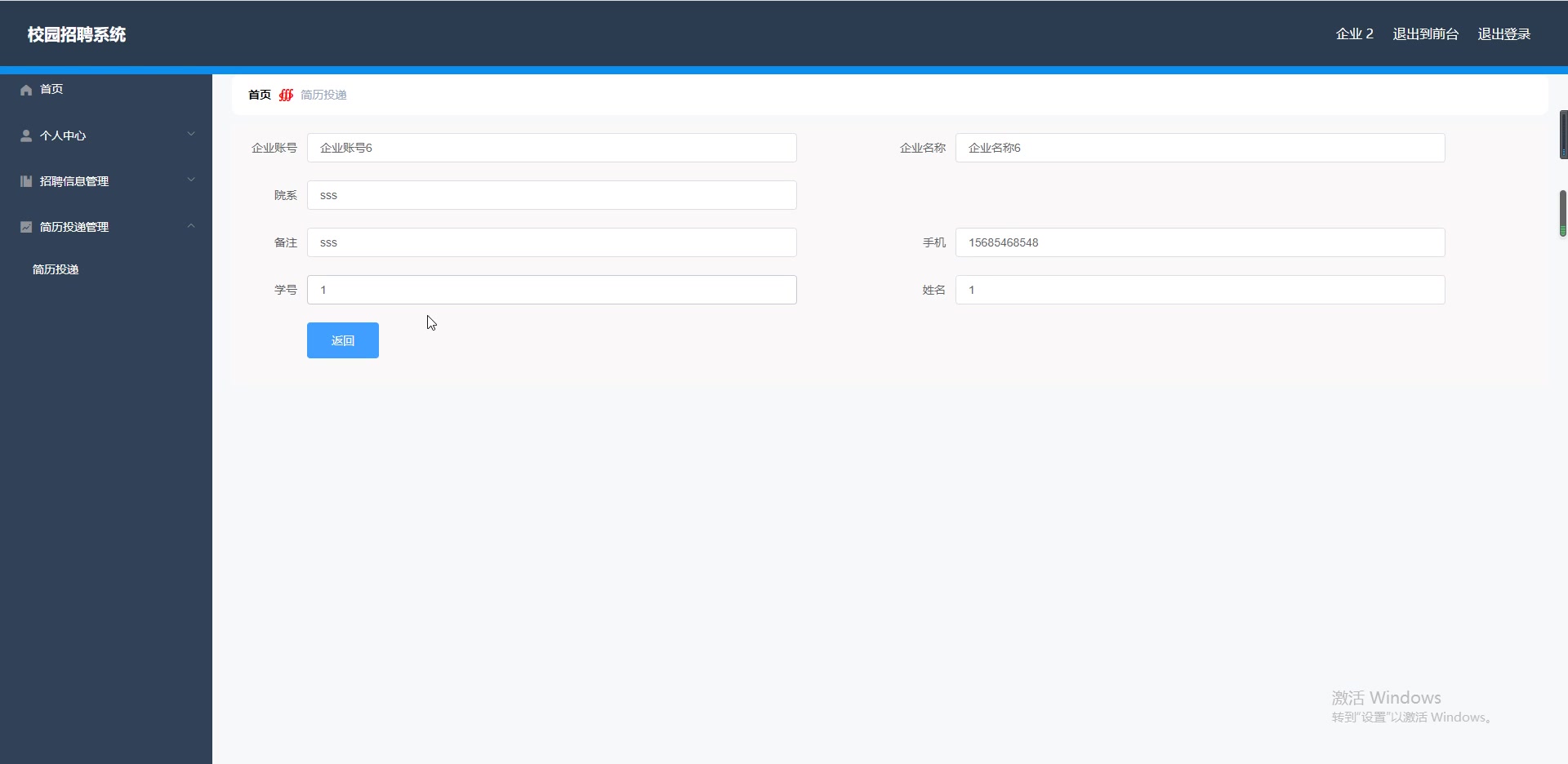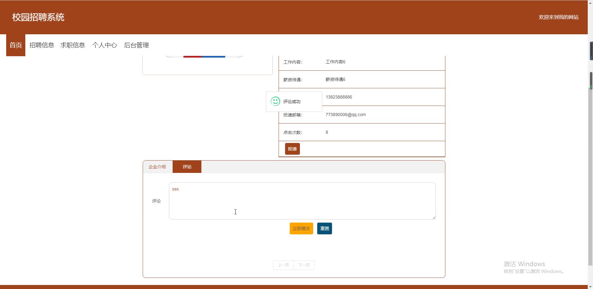 本基于ssm框架的校园招聘系统的设计与实现有管理员,企业用户和用户三个角色,其界面操作功能介绍如下: