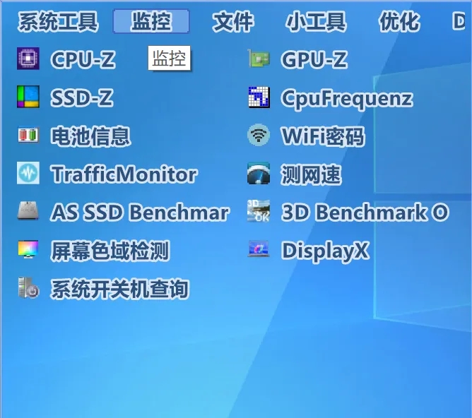 在「监控」分类中,点击“CPU-Z”可快速查看当前设备的处理器型号、内存频率、显卡信息及主板详情,适用于新购电脑验货、二手硬件真伪鉴别。