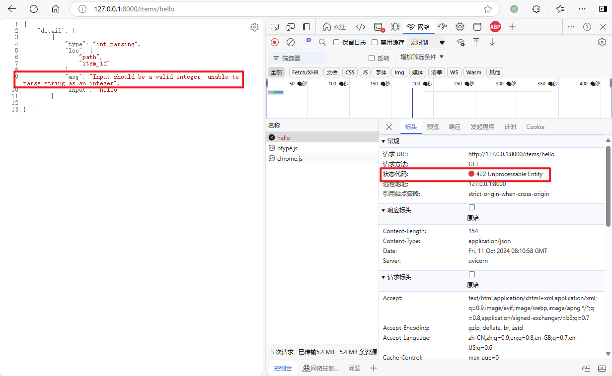 如果类型转换失败,将返回 422 错误响应: