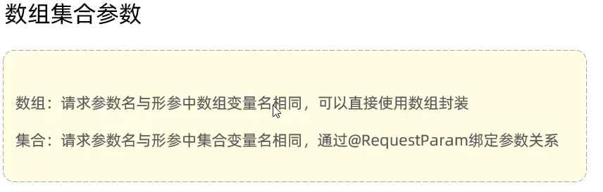 | 空参数处理 | 如果没传参数,数组/集合为 null(不是空数组!) |