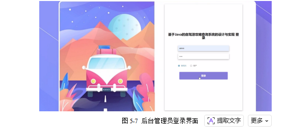 该自驾游攻略查询系统采用B/S架构进行设计,并采用java语言以及springboot框架进行开发。该系统主要设计并搞定了管理过程中的用户注册登录、个人信息修改、用户、景点类型、旅游景点、旅游游记、分类标签、旅游路线等功能。该系统操作简便,界面设计简洁,不但可以基本满足本行业的日常管理工作,同时又可以有效减少人员成本和时间成本,为自驾游攻略查询管理工作提供了方便。