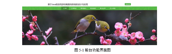 当游客打开系统的网址后,第一看到的就是首页界面。在这里,游客能够看到自驾游攻略查询系统的导航条显示首页、旅游景点、旅游游记、旅游路线、综合资讯、后台管理等,如图5-1所示。