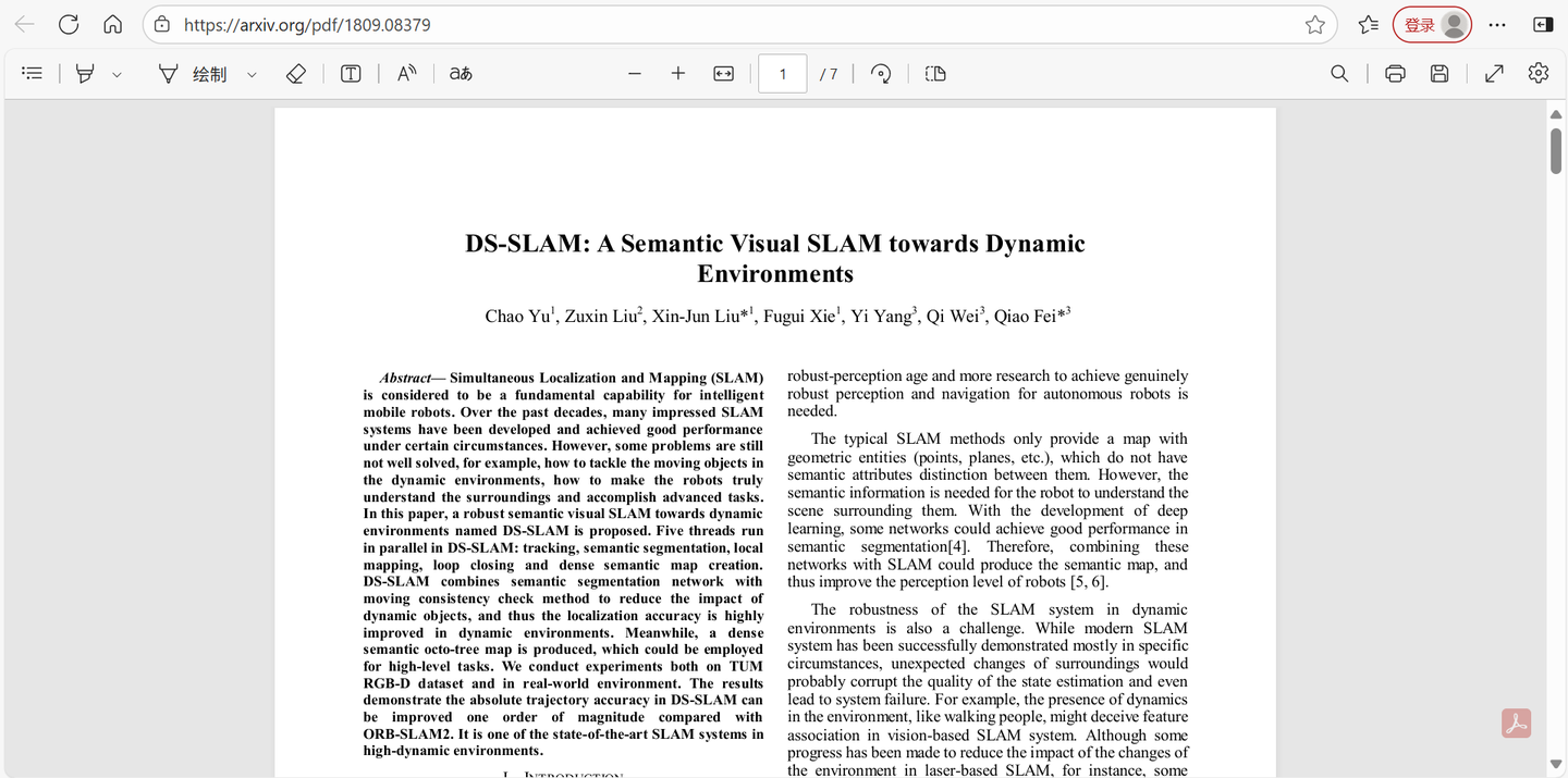 参考DS-SLAM,将语义分割网络与运动一致性检查方法相结合,以减少动态物体的影响,从而在动态环境中显著提高了定位精度。