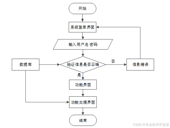否匹配数据库中存储的信息,验证通过即可登录成功。登录流程图如下图所示。就是用户访问平台的网站,进入登录页面页面,输入其用户名和密码,后端服务接收登录请求,验证用户提供的用户名和密码