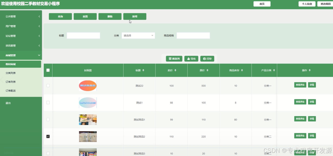 7.商城管理:管理员在商城管理模块中,能够管理教材商品信息、商品分类和价格等,确保商城商品信息的及时更新和准确性。