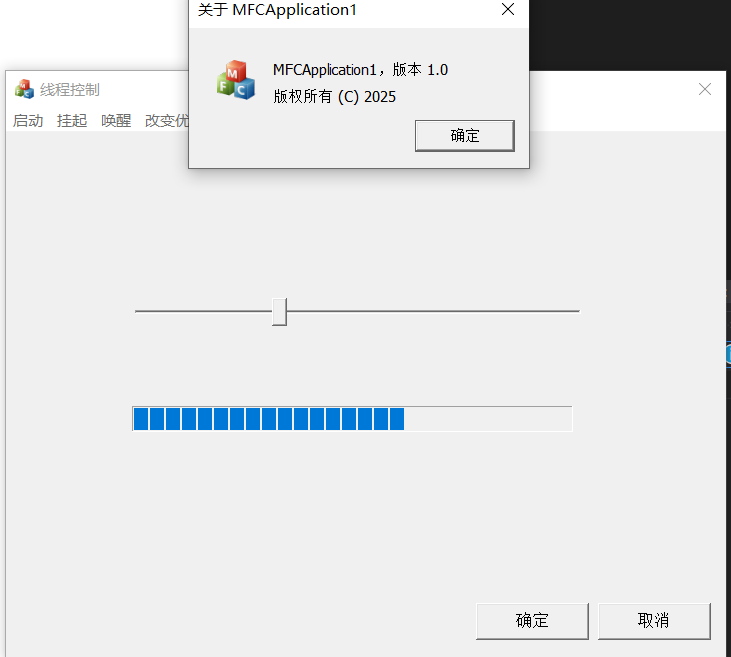 AfxMessageBox(L"线程2的优先级提升1级", MB_OK);