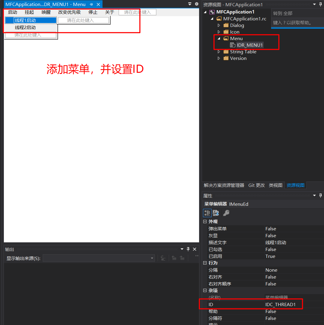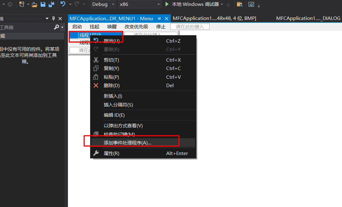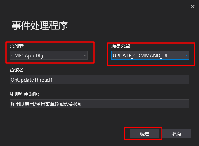 如对启动线程1和启动线程2添加UPDATE_COMMAND_UI消息处理函数