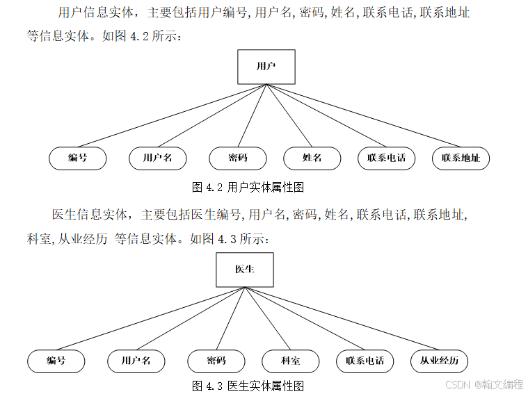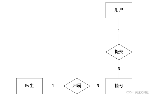 在医院挂号服务系统中,实体有用户实体,医生实体,挂号实体等实体,他们之间的关系如图4.13所示: