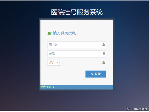 通过登录体系首页,出现用户名、密码的输入框,填写用户名和密码点击【提交】按钮,即可登录;也能够点击【注册】按钮,进行新用户注册。具体的登录页面如图6.1所示: