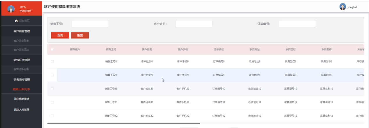 用户可以查看销售出库列表中某个销售出库的信息详情;可以对列表信息进行查询和重置。其界面如图5-17所示。