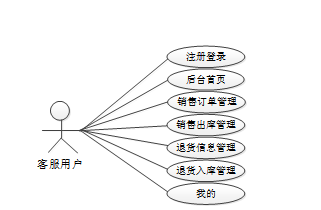 客服用户登录后,可以查看销售订单、退货信息、退货入库等信息并进行相关运行;同时行查看或修改个人基本信息和登录密码。