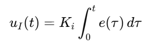 它干的事是:把误差随时间累加。哪怕误差很小,只要时间够久,积分值也会变大,最终产生足够的控制量,把误差“压到 0”。