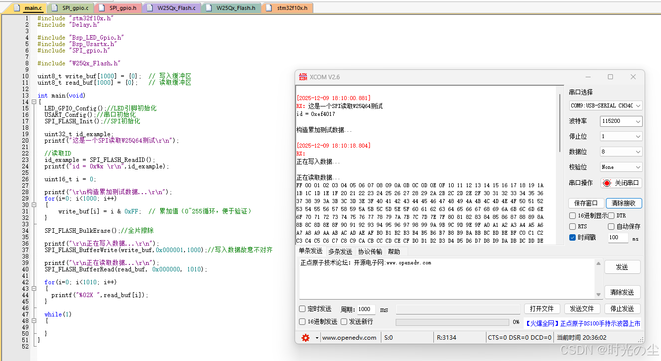 SPI_FLASH_BufferWrite(write_buf,0x000001,1000);//写入数据故意不对齐