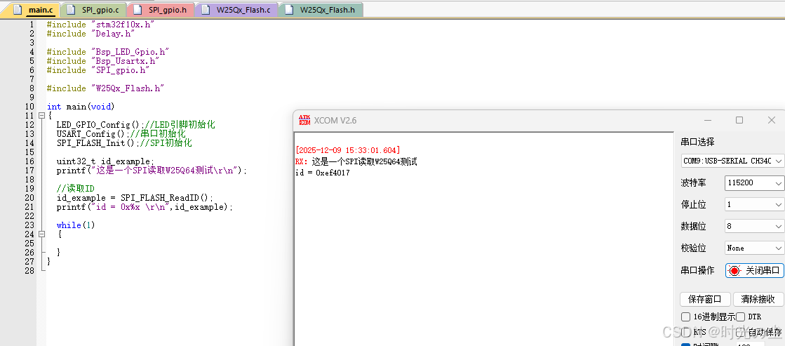 printf("这是一个SPI读取W25Q64测试\r\n");