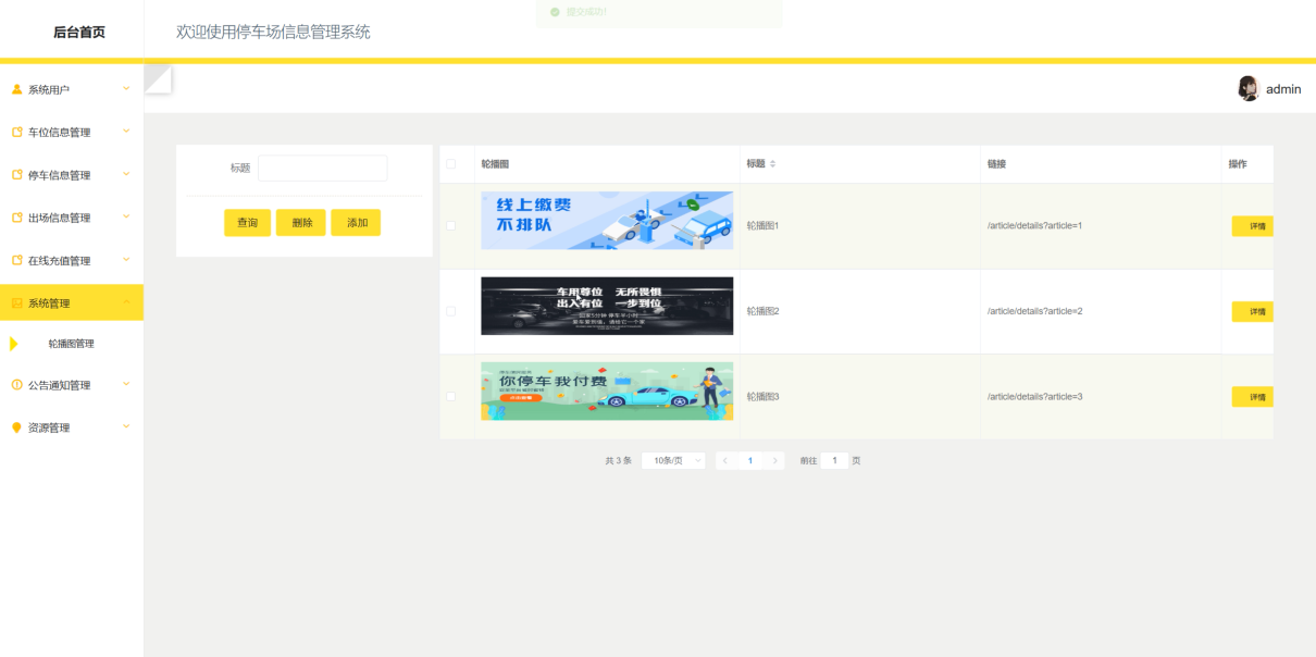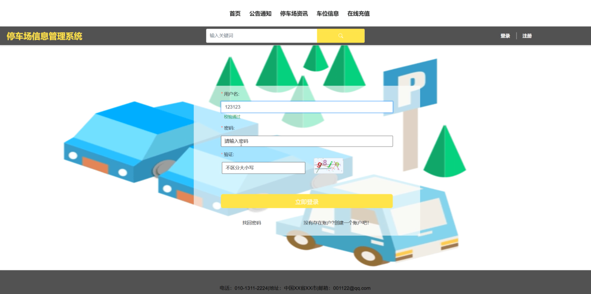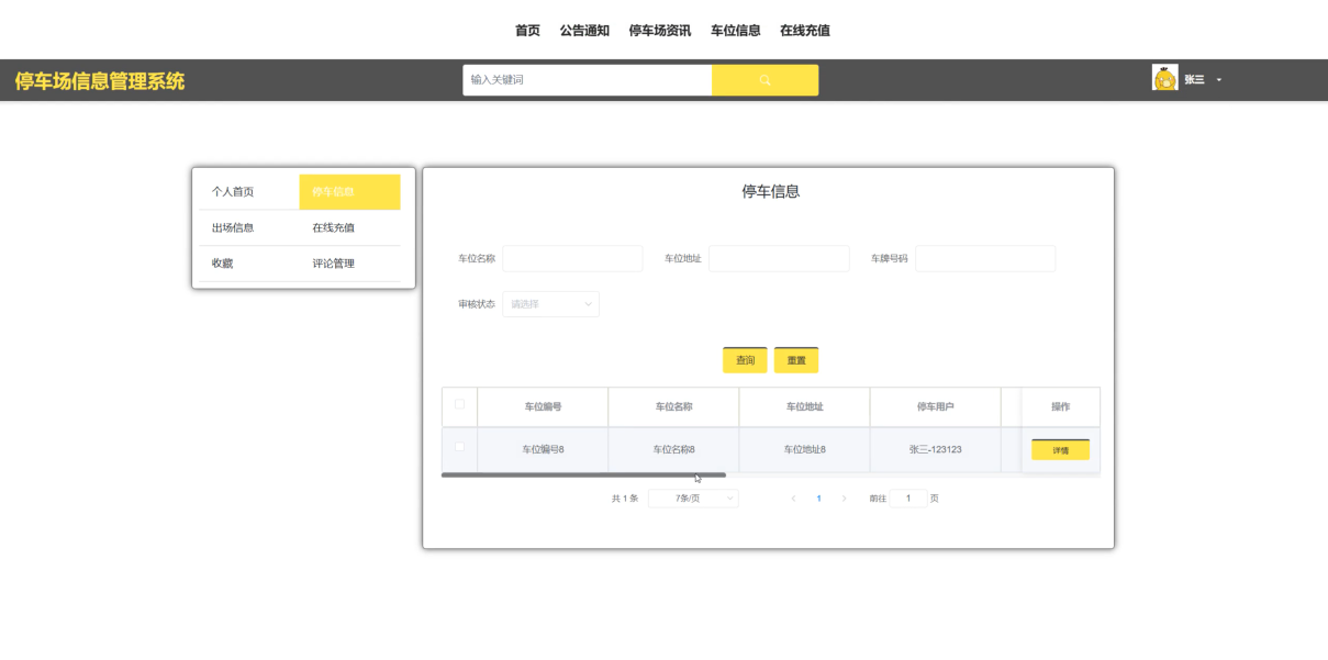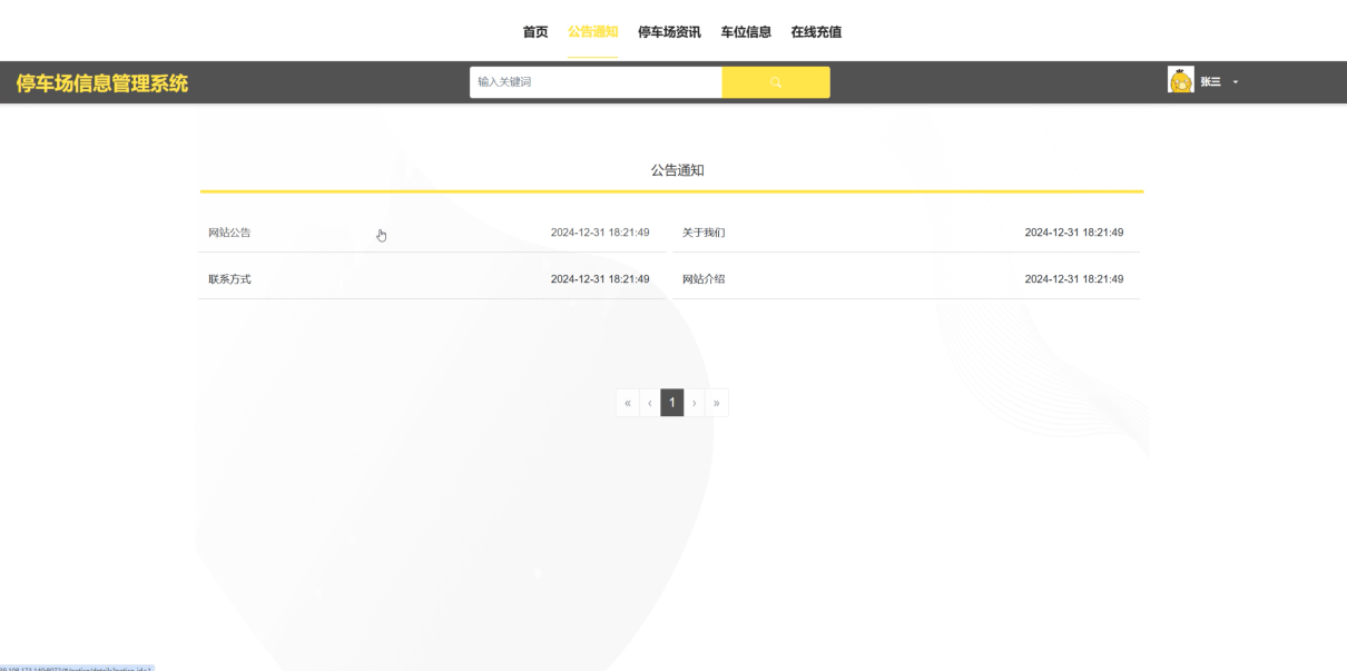 首页:展示停车场基本信息、公告通知及轮播图内容,支援用户快速了解框架动态。